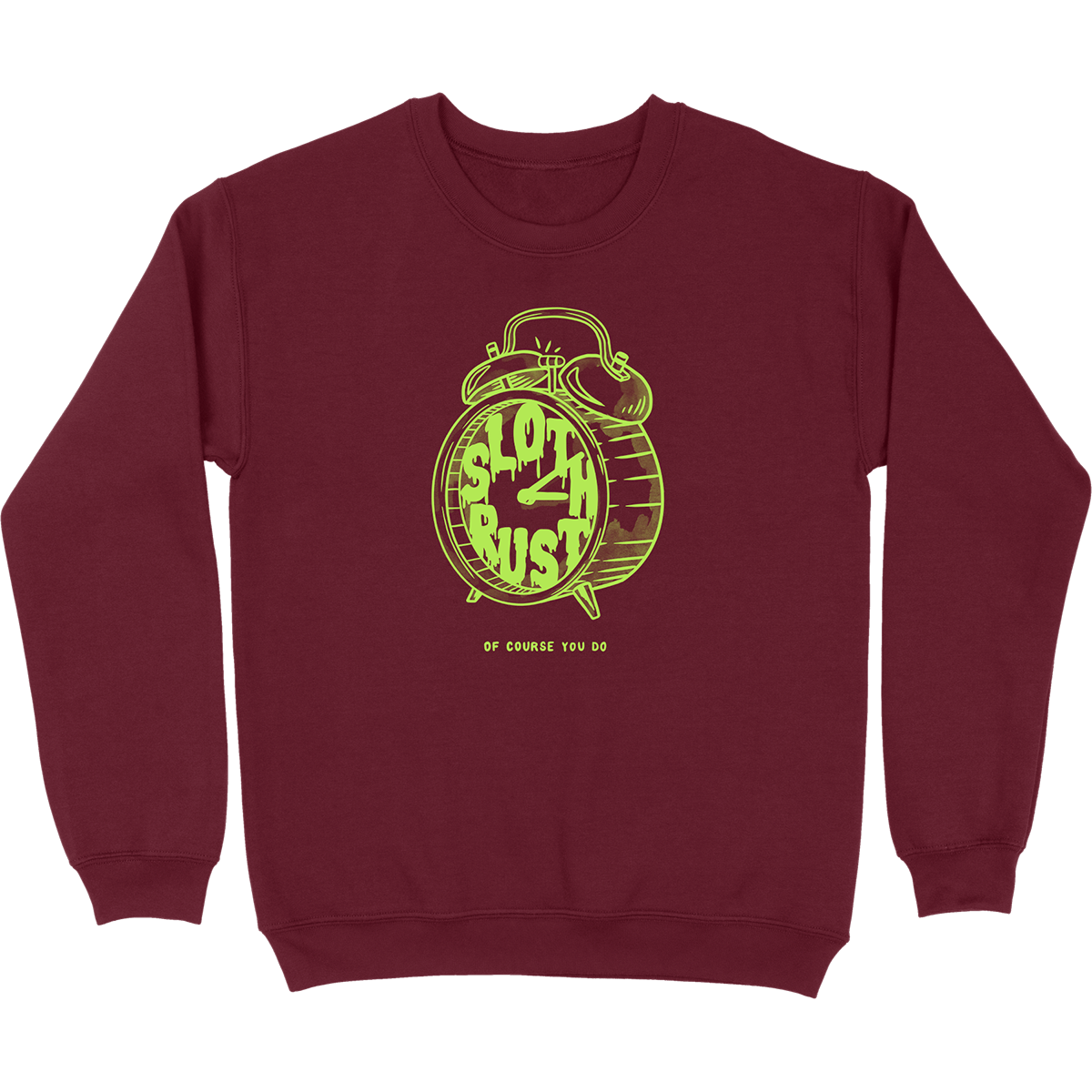 “3:11 I Look At The Clock” design by Anya Lange printed on a garnet crewneck sweatshirt.